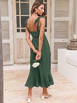 Buy Makemechic Women S Spaghetti Strap V Neck Cross Back Ruffle Hem Wrap Midi Party Dress Light Blue Medium At Amazon In